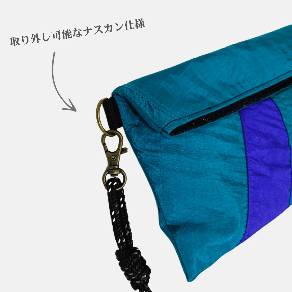 古着やデッドストック素材を再構成した、折返しデザインのサコッシュ「Re:FLAP」。