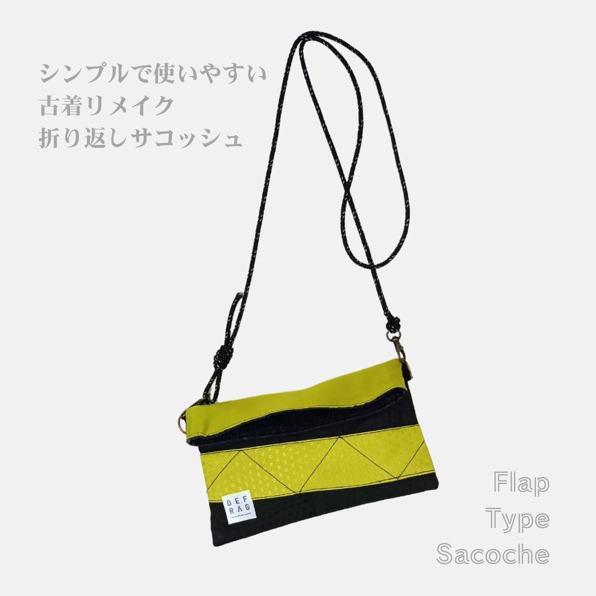 古着やデッドストック素材を再構成した、折返しデザインのサコッシュ「Re:FLAP」。