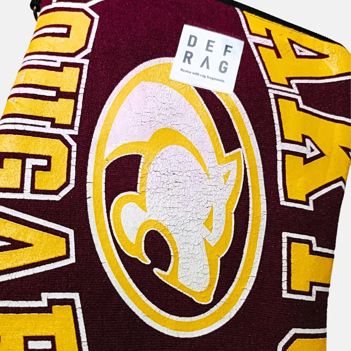 古着らしいアメカジスウェットを解体したカジュアルなリメイクショルダー。パンサーロゴとカラーリングがナイス!
