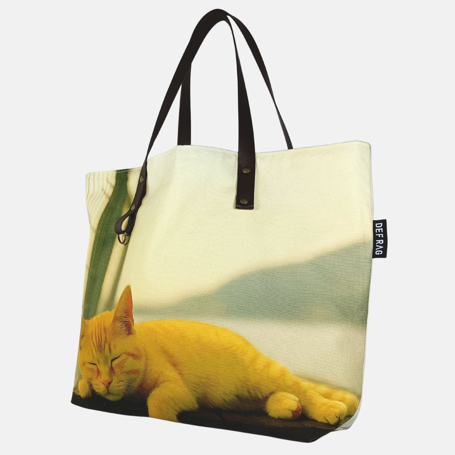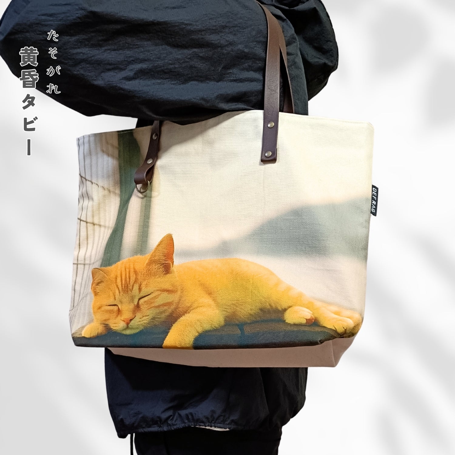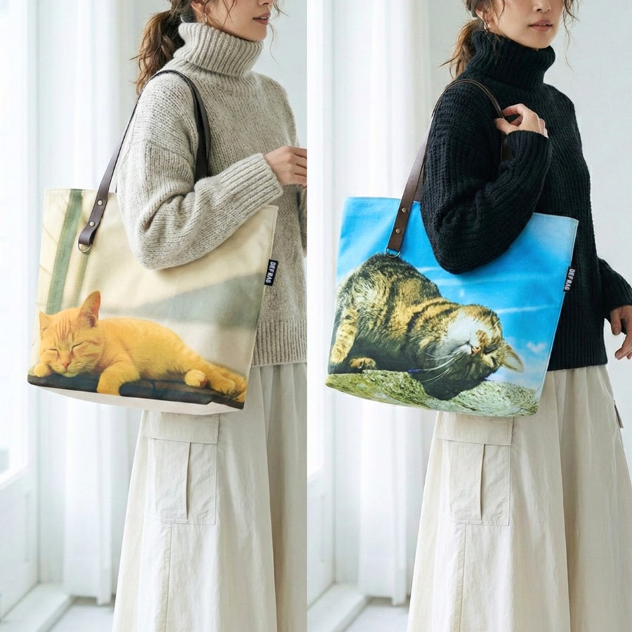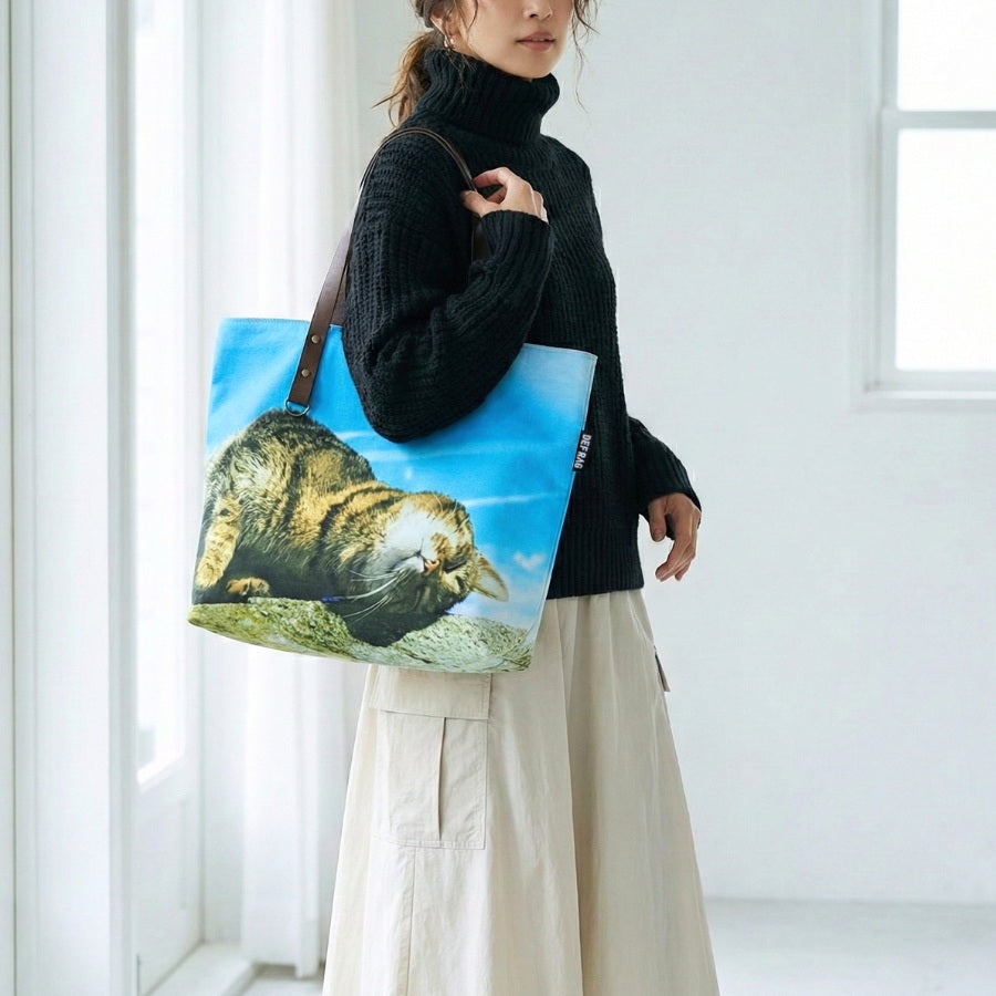 穏やかな色合いの猫写真と、上質な素材感を楽しめるトートです。