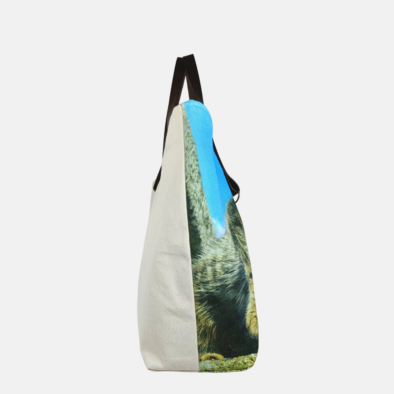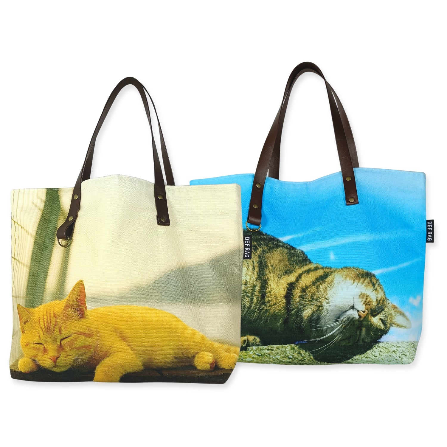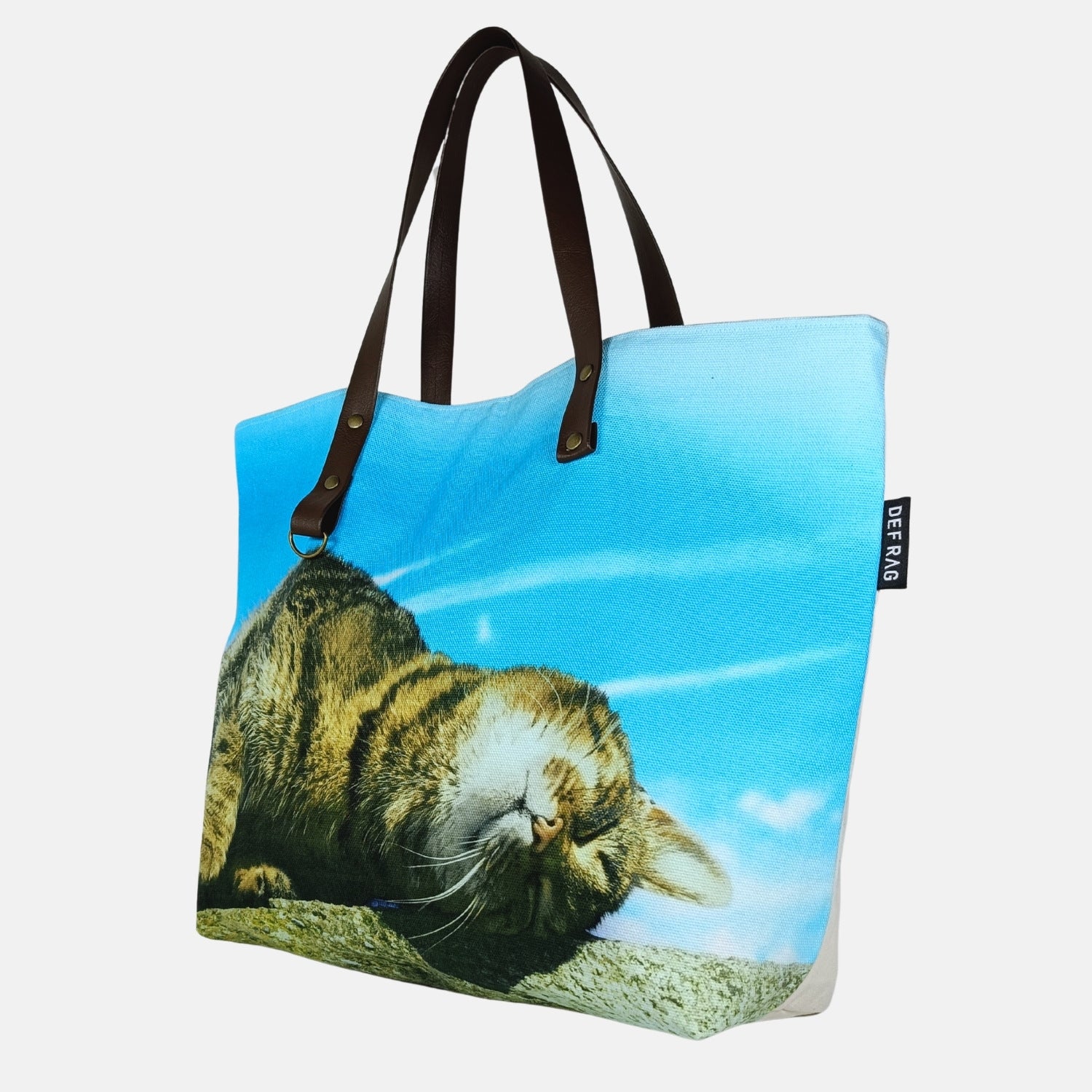穏やかな色合いの猫写真と、上質な素材感を楽しめるトートです。