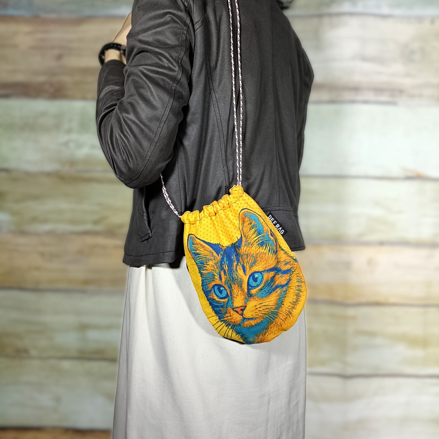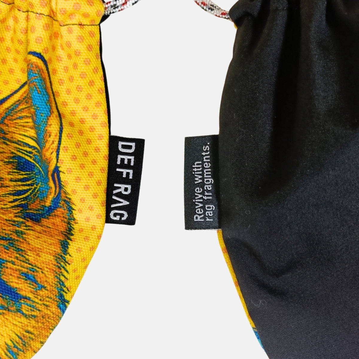 DEFRAGオリジナルデザインをキャンバス地にプリントした、ここでしか手に入らない特別な巾着ショルダー。